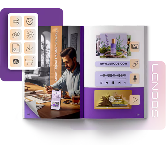 لنوس PDFهای شما را (هر نوع محتوا) به کاتالوگ، بروشور، مجله و کتاب دیجیتال تعاملی تبدیل می‌کند. محتوایی پویا و به‌روز ارائه دهید و با ابزارهای هوشمند، مخاطبان را به مشتریان وفادار تبدیل کنید. عملکرد محتوا را تحلیل کنید و حضور آنلاین خود را با مدیریت ساده تقویت نمایید.